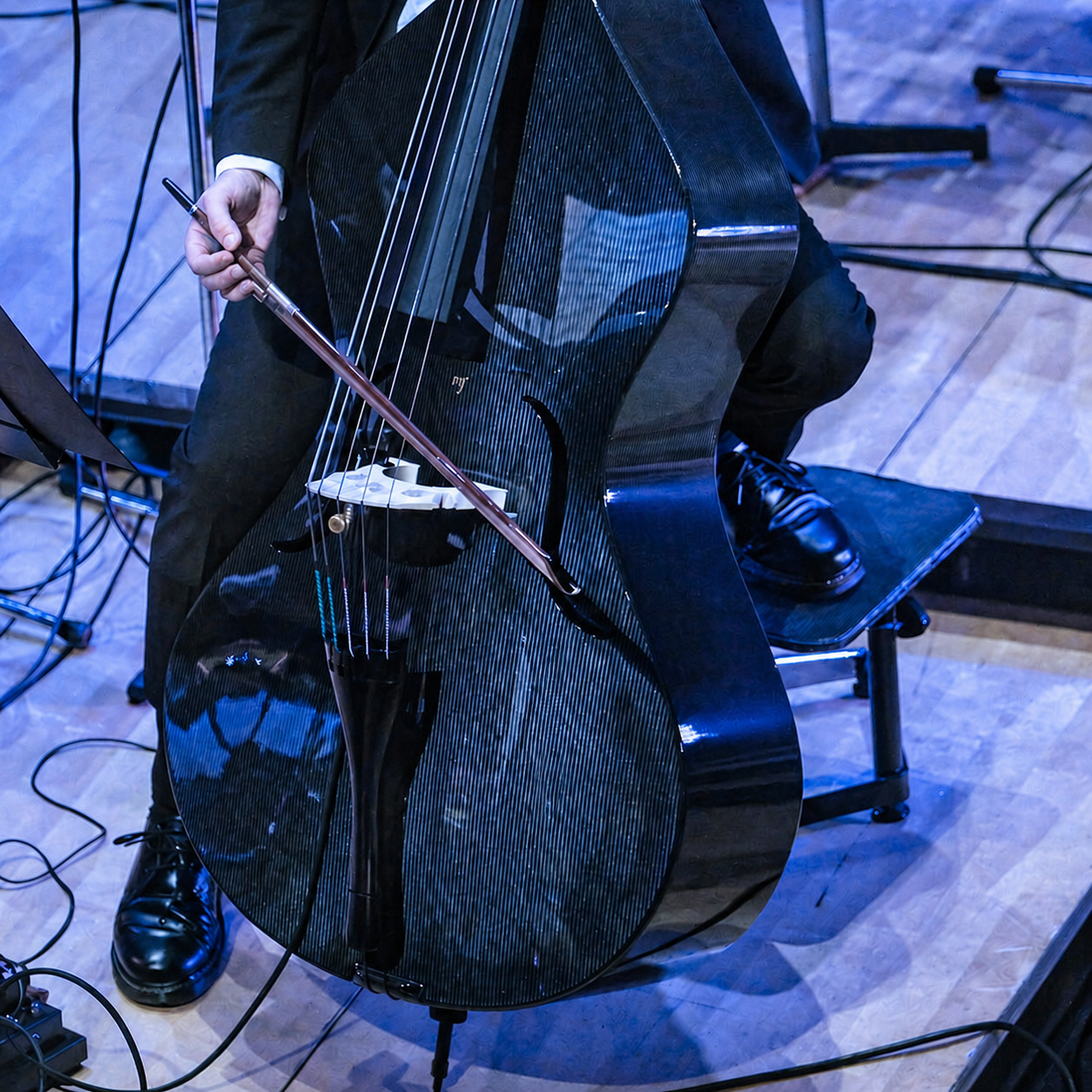 Dasselbe Stück, dieselbe Bühne – Meistercello aus Holz und mezzo-forte Carboncello im direkten Vergleich.